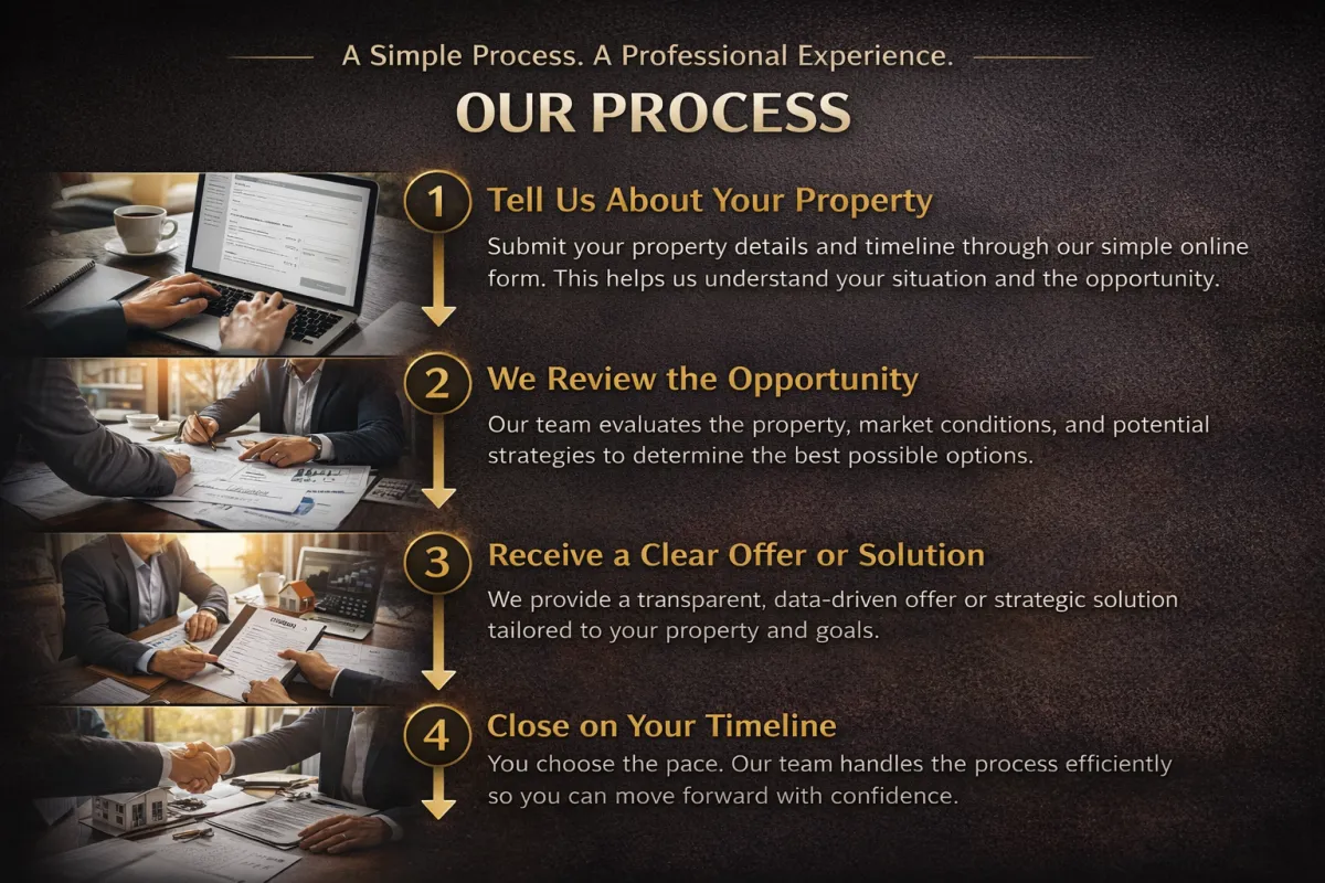 Whether you're facing a time-sensitive sale, dealing with an unwanted property, or exploring an off-market opportunity, our goal is to make the process fast, flexible, and professional.